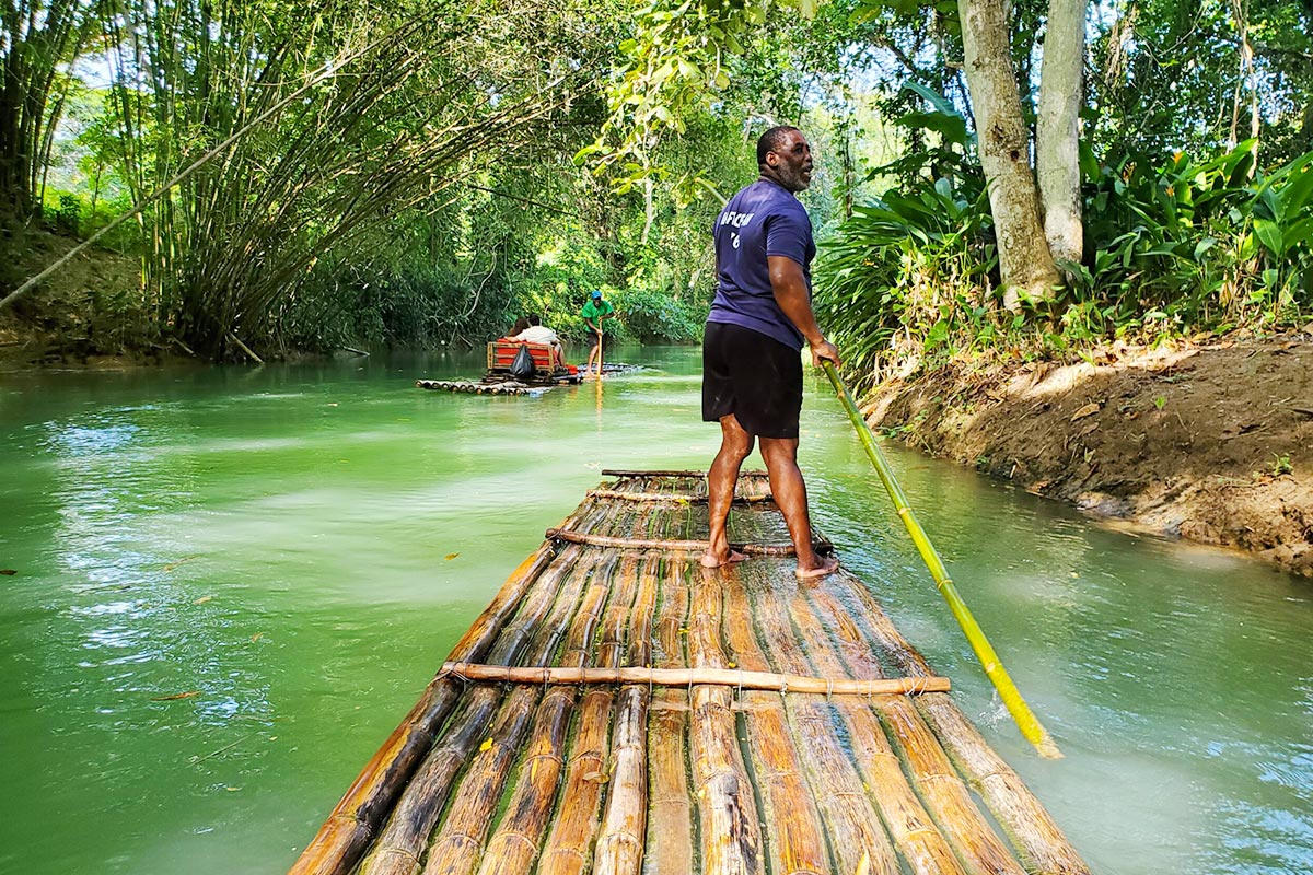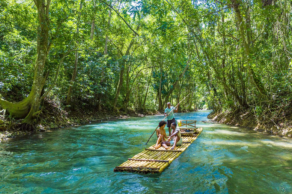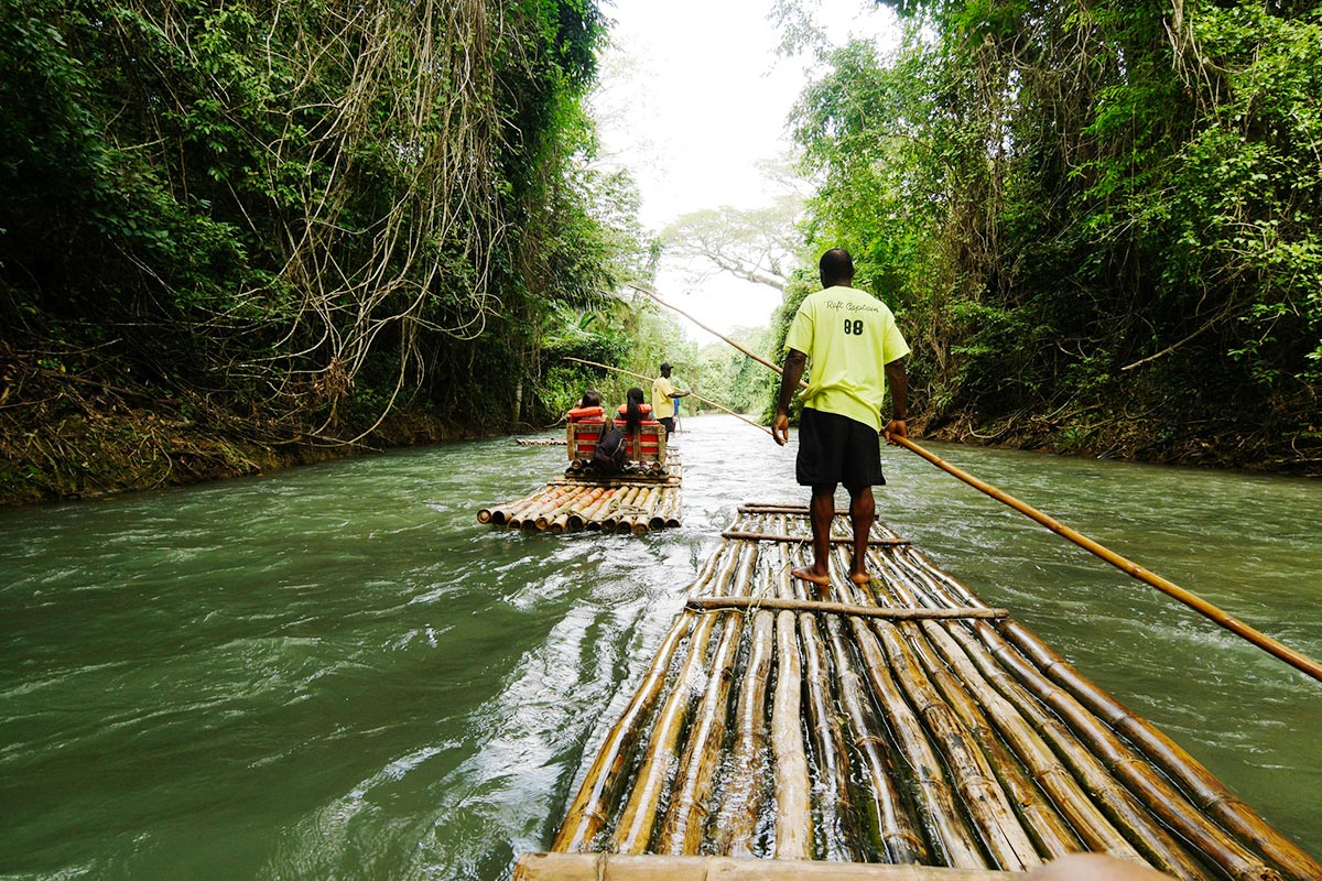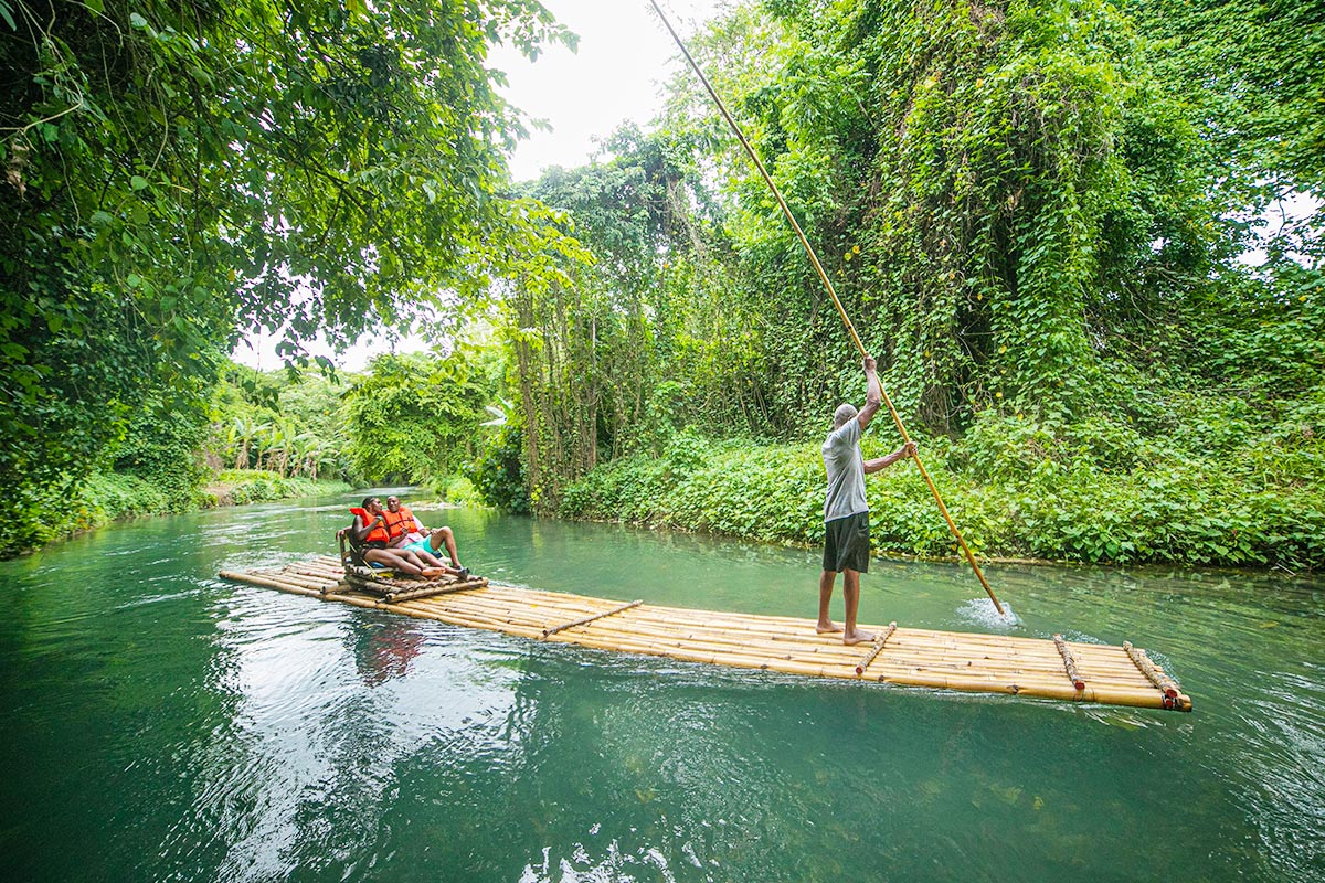 • Drift along the calm, emerald-green Martha Brae River on a handcrafted bamboo raft.