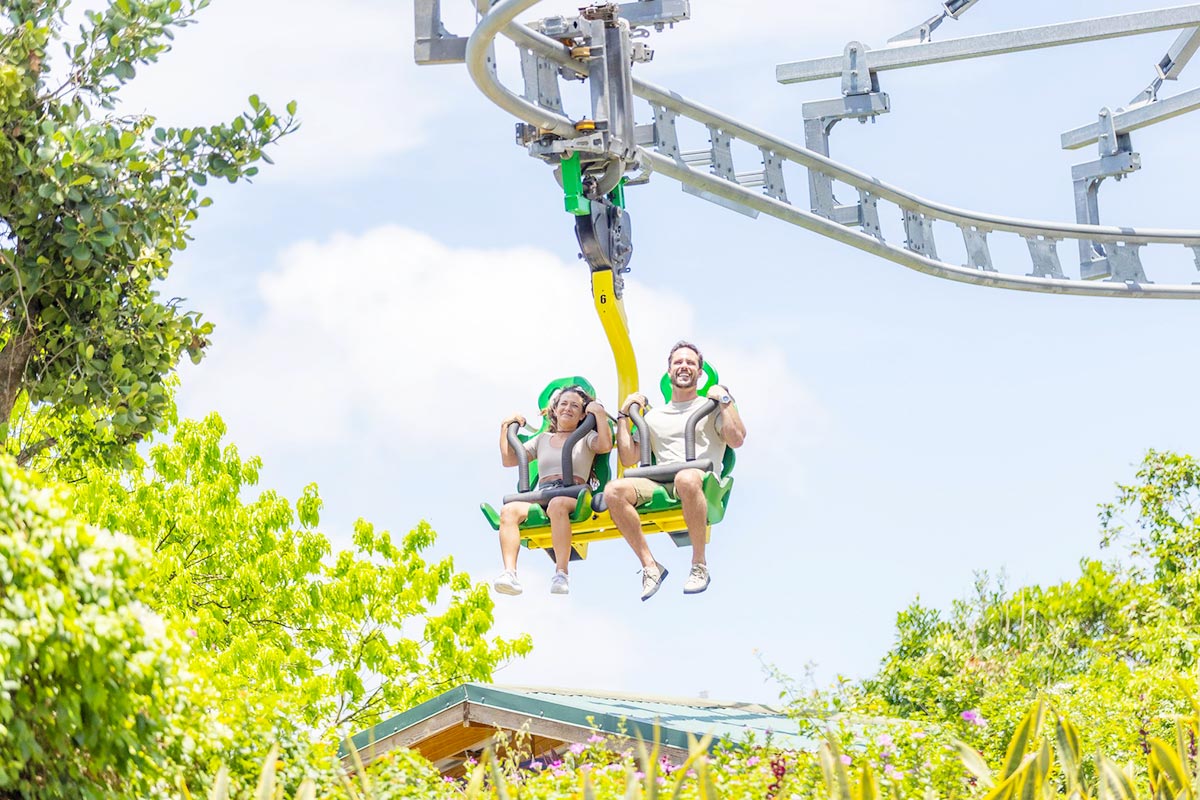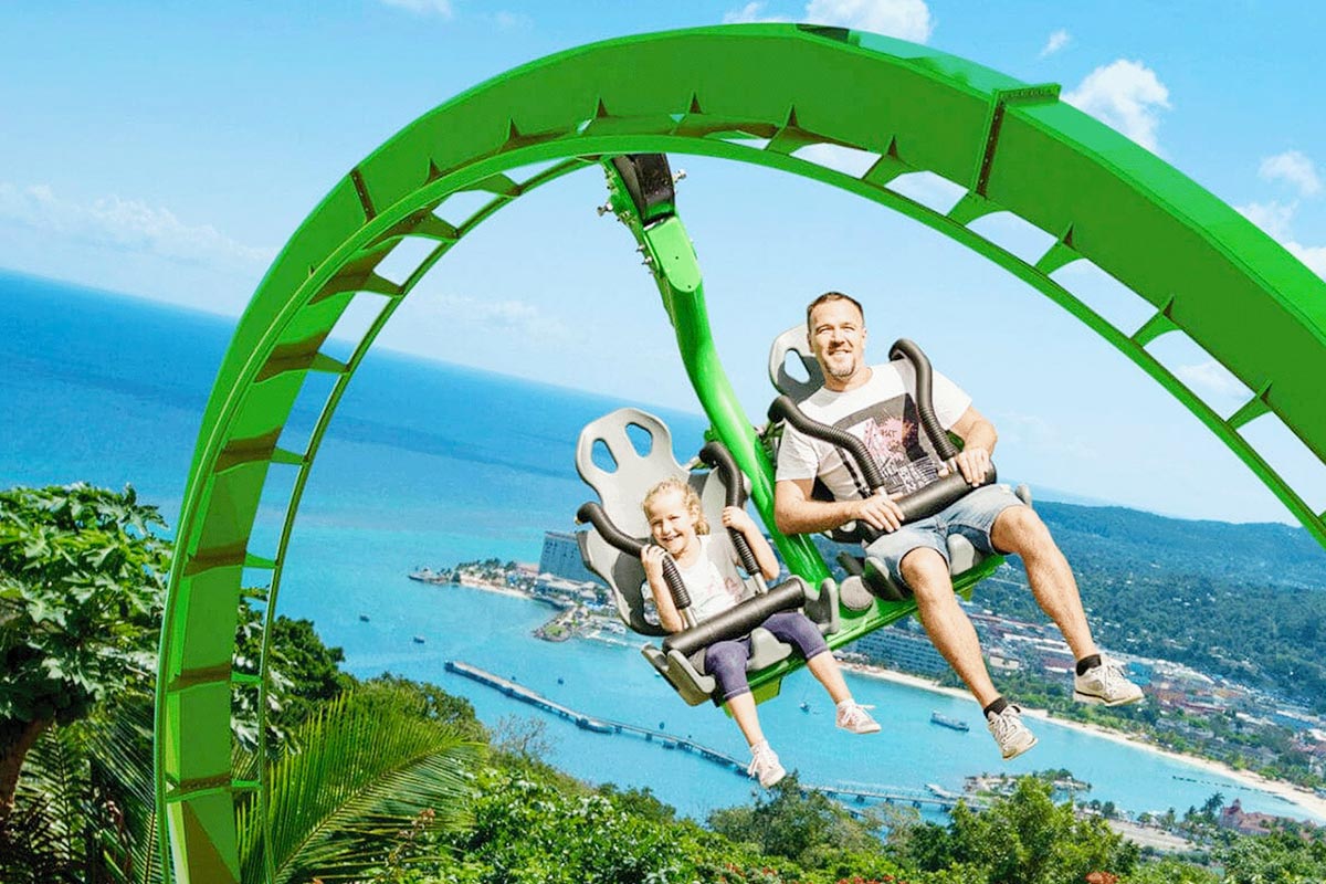 Upon arrival, the adventure kicks off with the Sky Explorer, a peaceful chairlift ride that glides 700 feet above the rainforest canopy. From there, take on thrilling challenges like Anancy’s Web Rope Course and the world-famous Bobsled Ride, inspired by Jamaica’s Olympic team. Test your courage on the Zipline Canopy, offering heart-pounding excitement as you soar above the treetops.